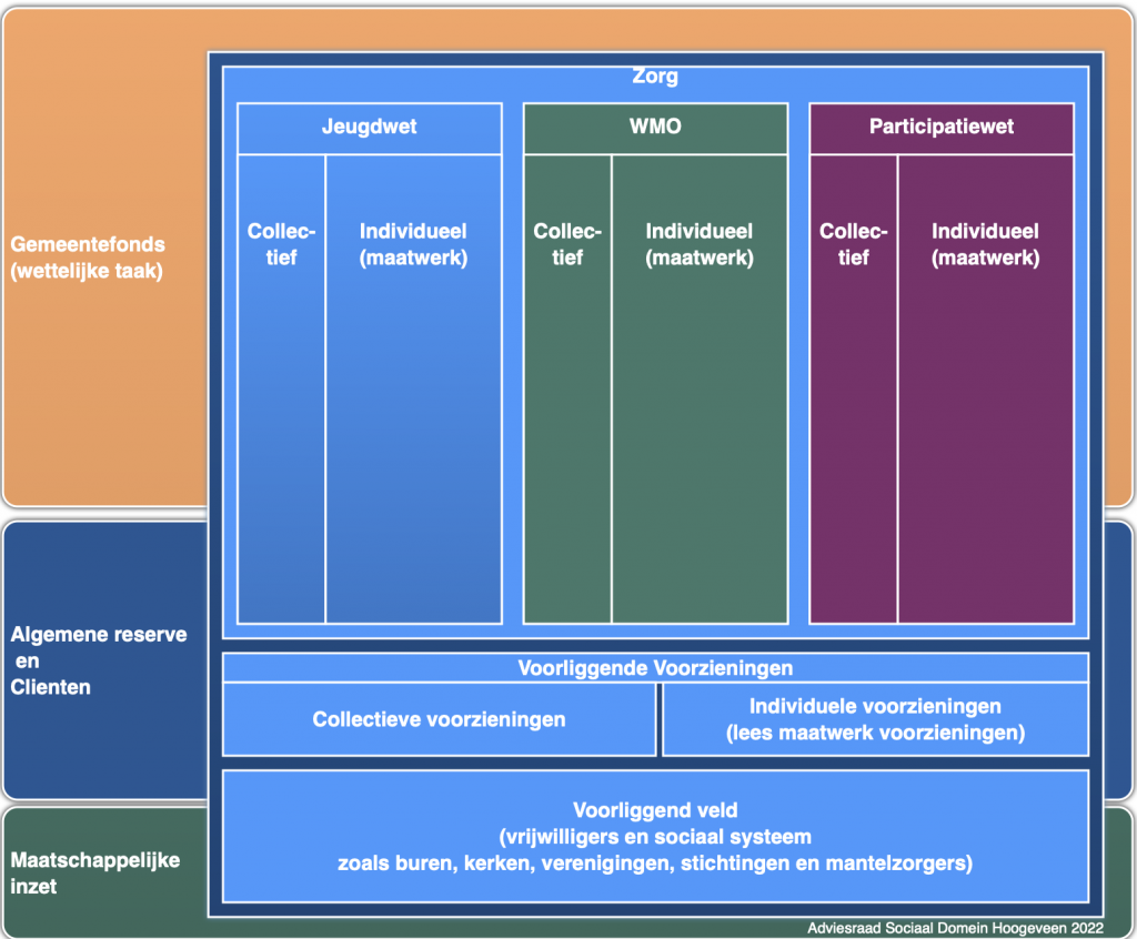 Het valt ons als Adviesraad op dat veel wordt verwezen naar het voorliggend veld. Wij willen hierbij benadrukken dat dit voorliggend veld bijna geheel wordt gevormd door langdurige en bestaande en spontaan ontstane activiteiten, ontstaan vanuit de maatschappij (participatie) en de eigen verantwoordelijkheid van de medemens uit sociale aspecten en vanuit de morele plicht over het omzien naar elkaar. En dat in Hoogeveen 14% van de inwoners hun vrijwilligheid inzetten. Niet gedreven en aangestuurd door de overheid. Dit in verhouding met een normaal gemiddelde inzet van 12%. Hoeveel rek denkt het college dat er nog in het voorliggend veld zit?